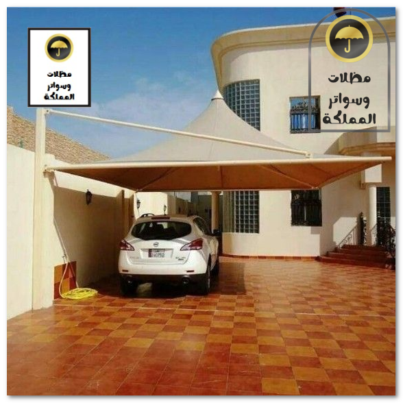 مظلات سيارات أمام المنازل والفلل: لحماية المركبات من حرارة الشمس والأمطار.